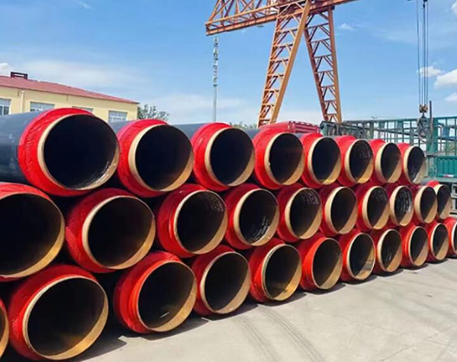 2. 聚氨酯保温层‌:采用高压发泡机在钢管与外护层之间形成的空腔中一次性注入硬质聚氨酯泡沫塑料原液而成,密度一般为50kg/m³至80kg/m³。聚氨酯泡沫层具有良好的隔热性能和耐腐蚀性能,导热系数一般为0.023W/(m·K)至0.038W/(m·K),能够有效减少管道热损失。
